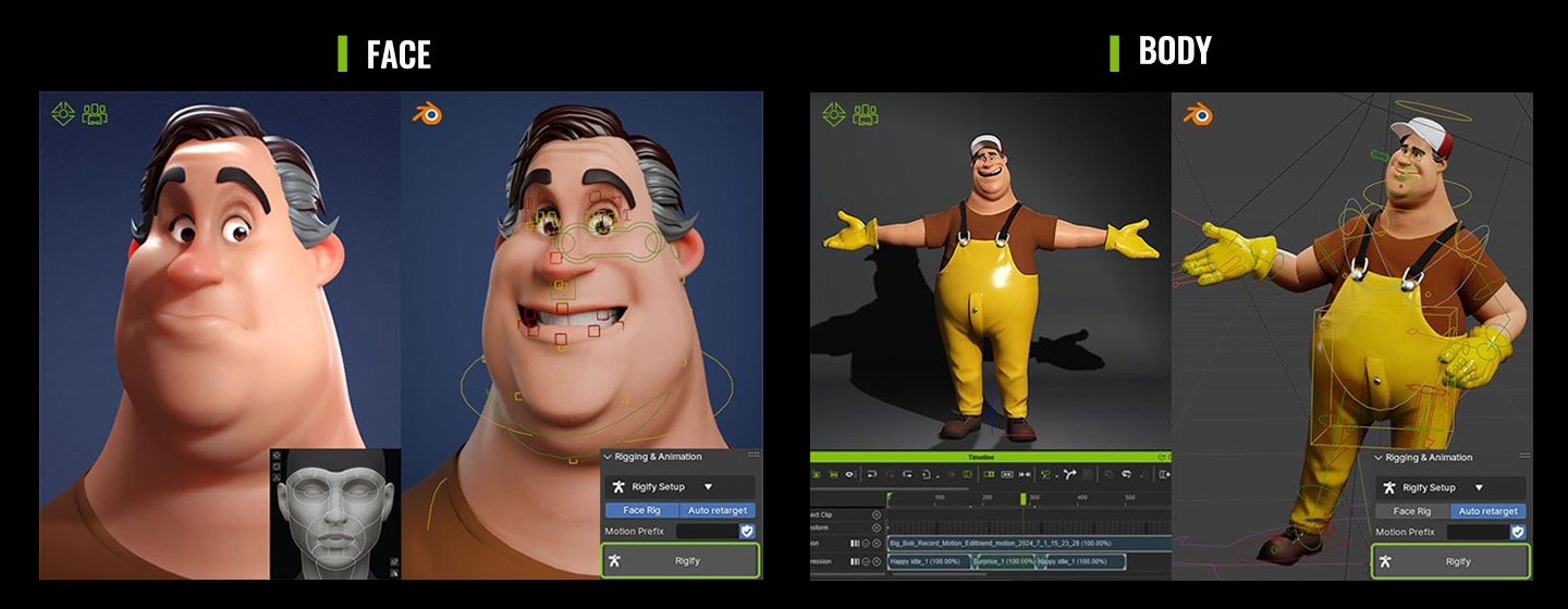BAS确保从CC和iClone到Blender的精确动画传输,并生成Rigify控制装备。此功能允许使用反向运动学(IK)和正向运动学(FK)微调角色运动,并自动重定运动目标。它增强了Blender中动画的灵活性和控制力,并允许将装备发送回CC或iClone进行进一步编辑。