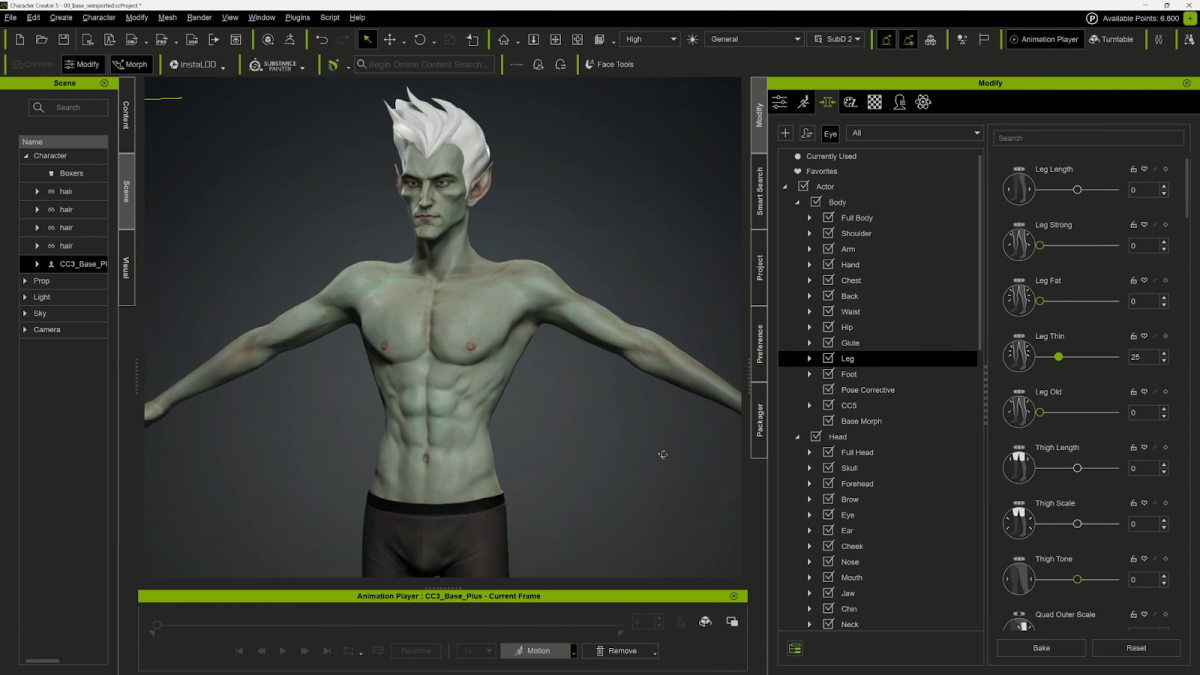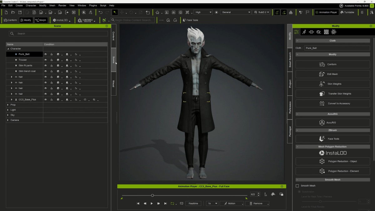 由于重点在于面部设计,我并未耗费时间从零开始设计服装,而是利用CC5中的免费造型服装包进行混搭组合。