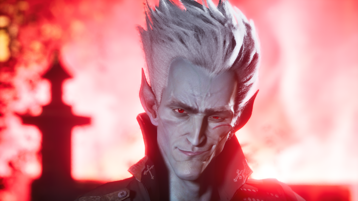 灯光设计力求简洁:仅使用一盏聚光灯、一盏点光源,并进行基础调色。为营造环境张力,背景中添加了带红色调的尼亚加拉火焰特效,模拟城堡燃烧的氛围。