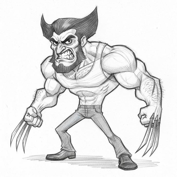 第一步是建立基础形态。构思你想要塑造的角色——是夸张的卡通形象吗?我以金刚狼的草图作为参考蓝本。
