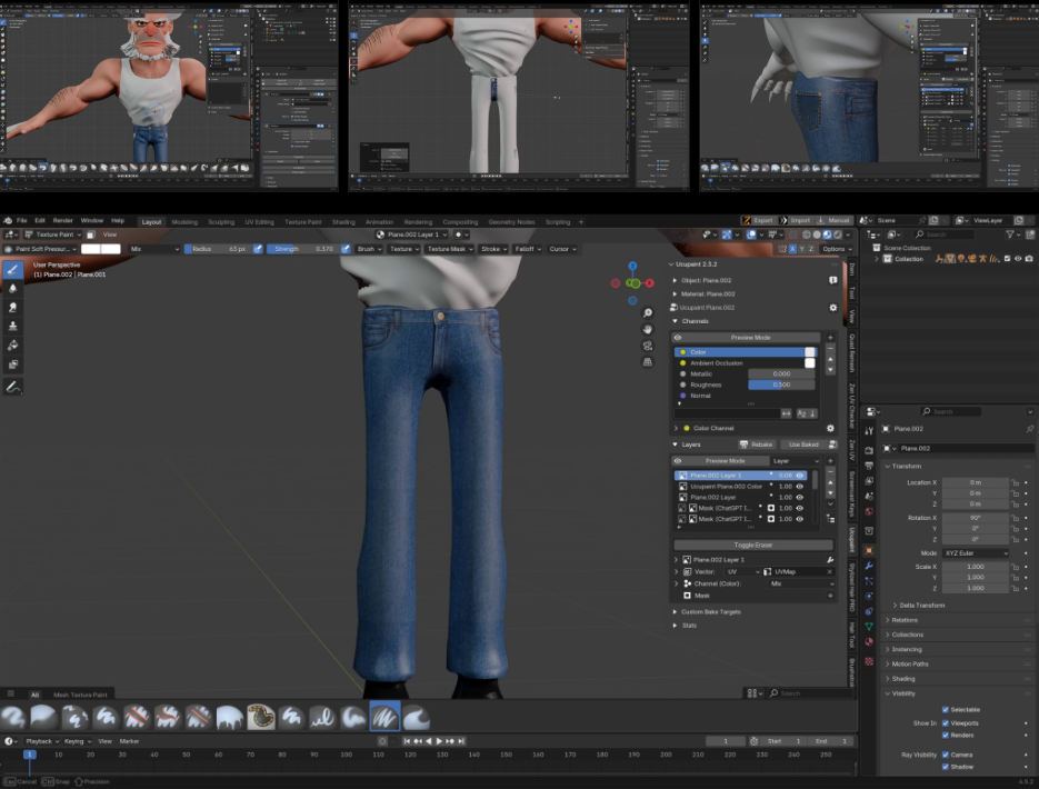 3.纹理处理:为添加纹理细节,我使用名为UCUPaint的免费插件。通过导入图像(如皮带扣或织物纹理),并将投影坐标设置为贴花模式,即可将纹理精确放置在网格的指定位置。