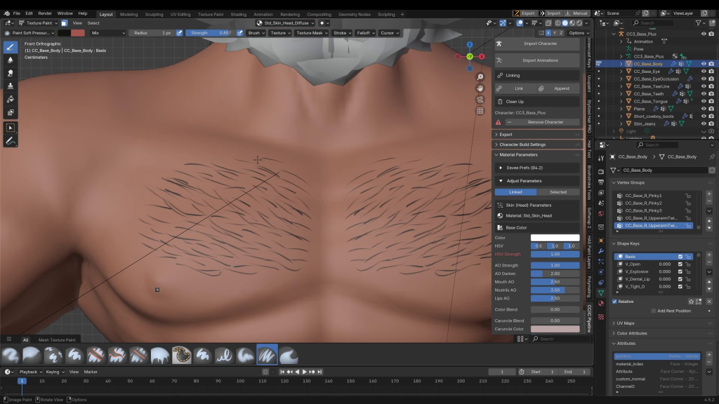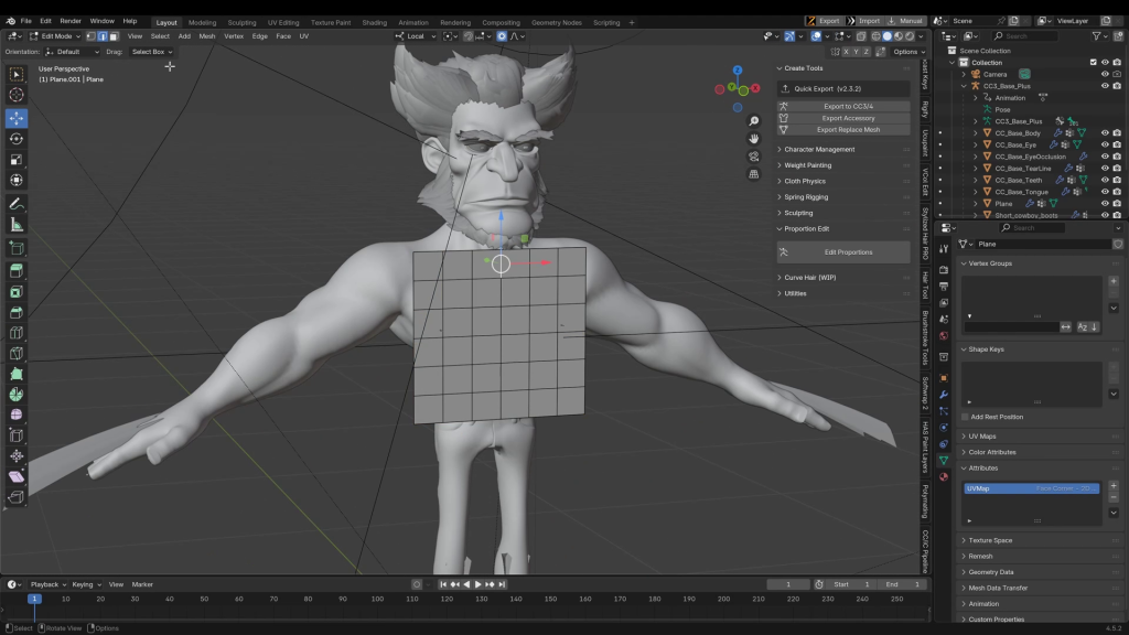添加基础服装后,我通过Blender管道菜单(安装后可在插件类别中找到)将角色导入Blender。导入后,我开始塑造他标志性的发型。