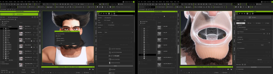 完成后,管道将这些修改回传至角色创建器时,并非以新基础网格的形式,而是作为变形滑块呈现。这种强大的非破坏性工作流程,让我能在角色创建器界面内精确调整高频细节。